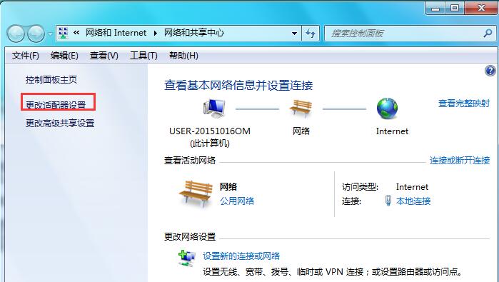 2.点击“更改适配器设置”。