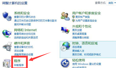 4.进入安全模式后打开控制面板,选择“删除程序”。