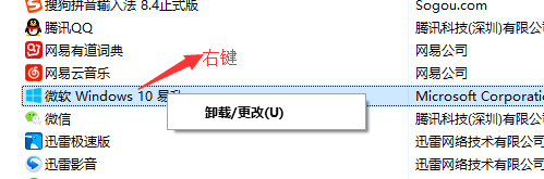 3、右击“微软windws10易升”,选择卸载