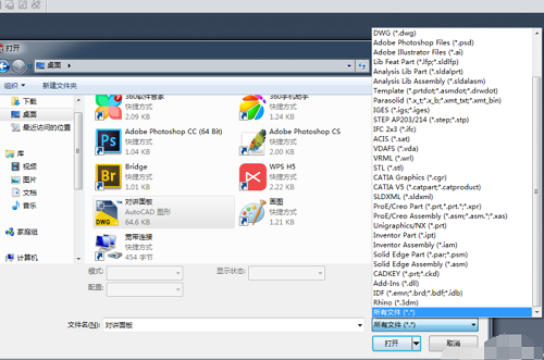 3、在右下角的文件类型中选择所有文件,选择dwg文件点击打开