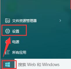 1、点击任务栏上的开始按钮,打开win10开始菜单界面,选择“设置”选项。如下图所示