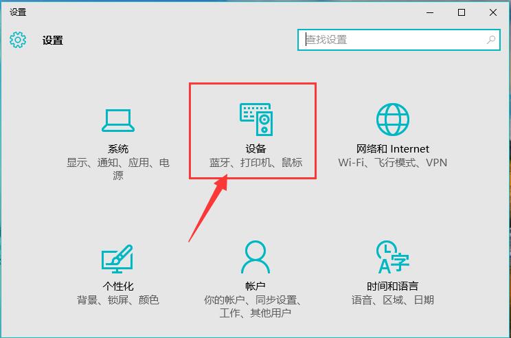 2、打开设置窗口后,点击列表中的“设备”图标。如下图所示