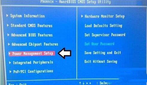 6、比如某些机型在进入BIOS之后,找到POWER MANAGEMENT SETUP中的Power Saving Mode设置为Disabled,再按F10保存设置退出BIOS,重启电脑。