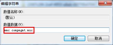 3、打开默认项,把数值数据的值改为“mmc compmgmt.msc”,确定保存后退出即可。