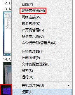 8、重启后就进入安全模式了,然后右击开始,选择“设备管理器”。
