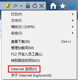 1、打开IE浏览器,点击右上角的齿轮图标,选择“Internet选项”,如图: