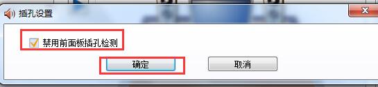 5、在弹出的小窗口,勾选“禁用前面板插孔检测”,点击确定。