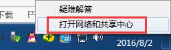 1、右击桌面右下角网络图标,选择“打开网络和共享中心”。