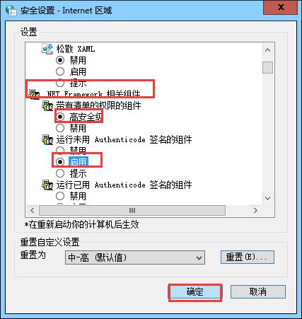 1、右击桌面Internet属性,然后点击“安全-自定义级别”,启用.NET Framework相关组件。