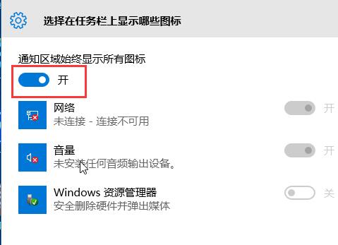 3、将“通知区域始终显示所有图标”设置为开启状态即可。