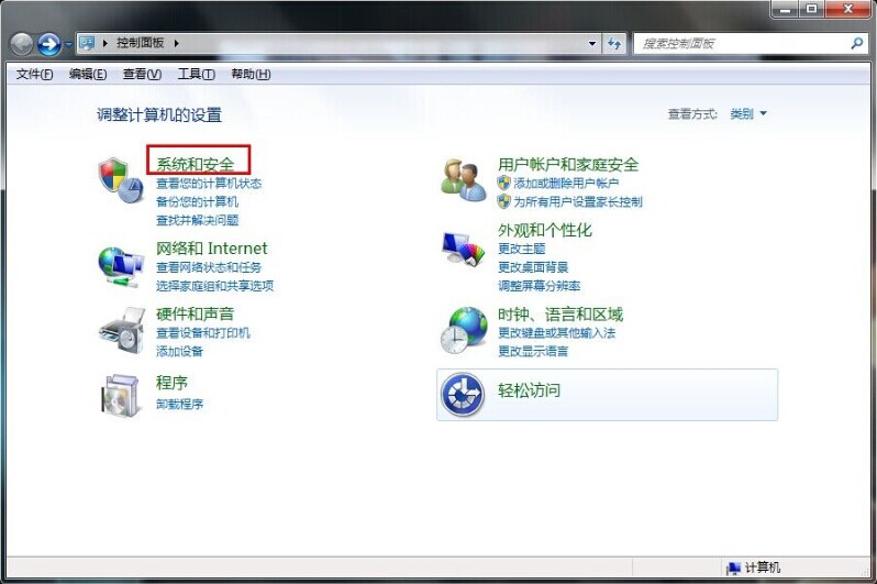 2.在打开的控制面板界面下,找到“系统和安全”标题点击打开。如下图所示