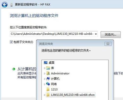 5、点击“浏览”选择驱动程序所在目录(也就是刚才解压出来的那个文件夹)并点击确定。