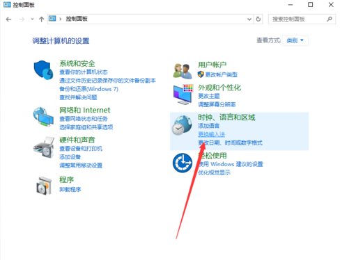 1、打开控制面板,点击“时钟、语言和区域”下的“更换输入法”,如图所示:
