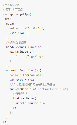 index.js 是页面的脚本文件,在这个文件中我们可以监听并处理页面的生命周期函数、获取小程序实例,声明并处理数据,响应页面交互事件等。