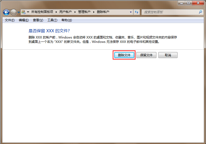 7.最后只需要点击“删除帐户”即可完成用户帐户删除操作。如下图所示