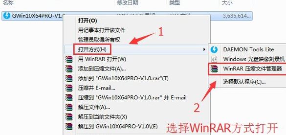 2、右击之前下载好的Win10系统镜像系统文件,打开方式为“WinRAR”,将它成功解压出来。