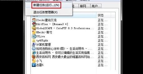 1.当系统激活的时候出现黑屏现象的时候,使用组合快捷键Ctrl+Alt+Delete打开任务管理器,然后在打开的任务管理器窗口中点击文件 - 新建任务“运行...(N)”。如下图所示