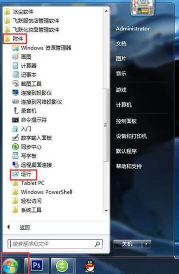 1、打开电脑左下角【开始】菜单,找到【运行】选项,点击打开。如图所示: