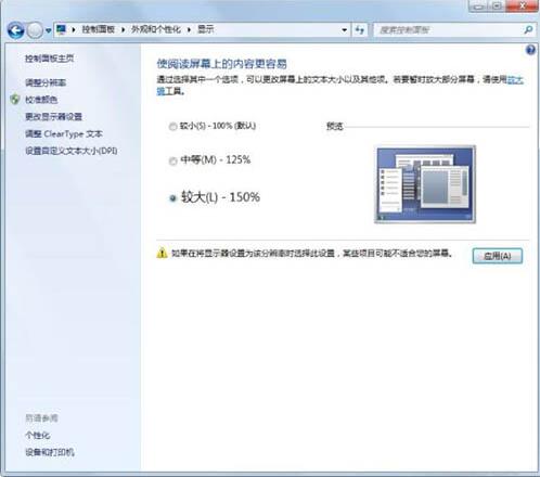4、然后点击应用就可以了,这时屏幕和网页的字体和图画都会变大了。如图所示: