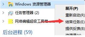 3、接着鼠标右键选择资源管理器,再点击“重新启动”即可。如图所示: