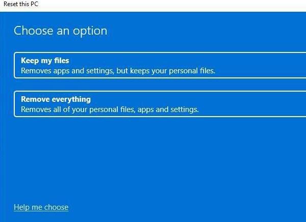 5、将出现另一个蓝屏,询问您“您想如何重新安装 Windows?”。再一次,您将获得两个选择。选择与您相关的选项,然后按照屏幕上的说明进行重置。
