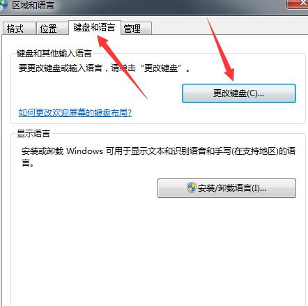 3、点击键盘和语言接着点击更改键盘。如图所示: