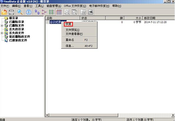 6.数据恢复工具对硬盘扫描完成之后,点击选择你所要恢复的文件,鼠标右键选择“恢复”。如下图所示