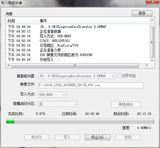 3.在弹出的写入硬盘映像窗口中,点击“写入”按钮开始制作。如下图所示