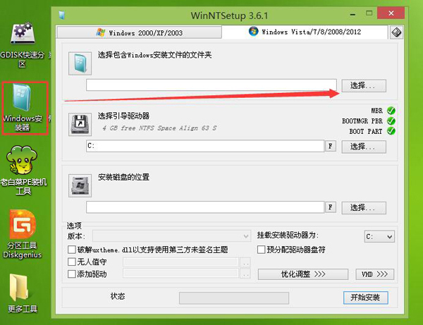 2、打开Windows安装器,点击“选择”,如下图所示: