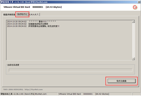 4.切换界面到“低级格式化”项,然后点击“格式化磁盘”进入下一步操作。如下图所示